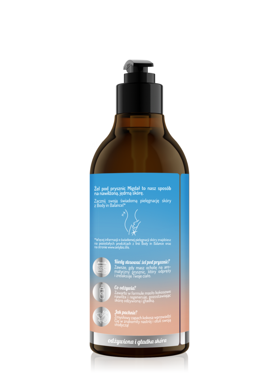 Od teraz każda kąpiel może być wyjątkowa – aromatyczna i niezwykle odprężająca. Żel pod prysznic Kokos z serii Body in Balance by Onlybio naturalnie zatroszczy się o Twoje ciało. Jego wegańska formuła pomoże Ci w odkrywaniu oraz doświadczania własnego piękna, dając poczucie pełnego komfortu oraz akceptacji. Formułę wzbogaciliśmy o masło kokosowe, które wzmacnia płaszcz hydrolipidowy skóry. Regeneruje ją oraz głęboko nawilża, sprawiając, że jest gładka i widocznie odżywiona.