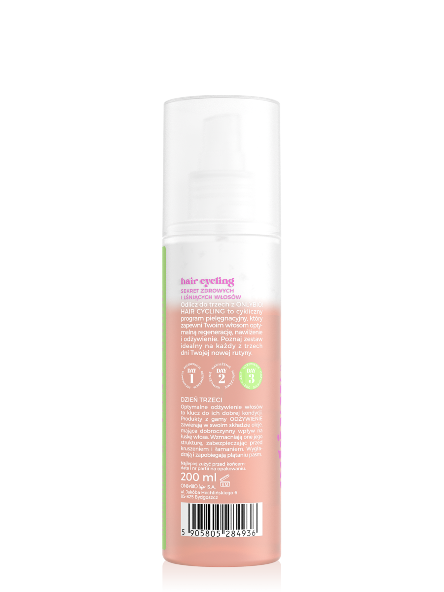 Przed użyciem wstrząsnąć! Rozpylić po każdym myciu na osuszonych ręcznikiem lub wysuszonych włosach. Bez spłukiwania!