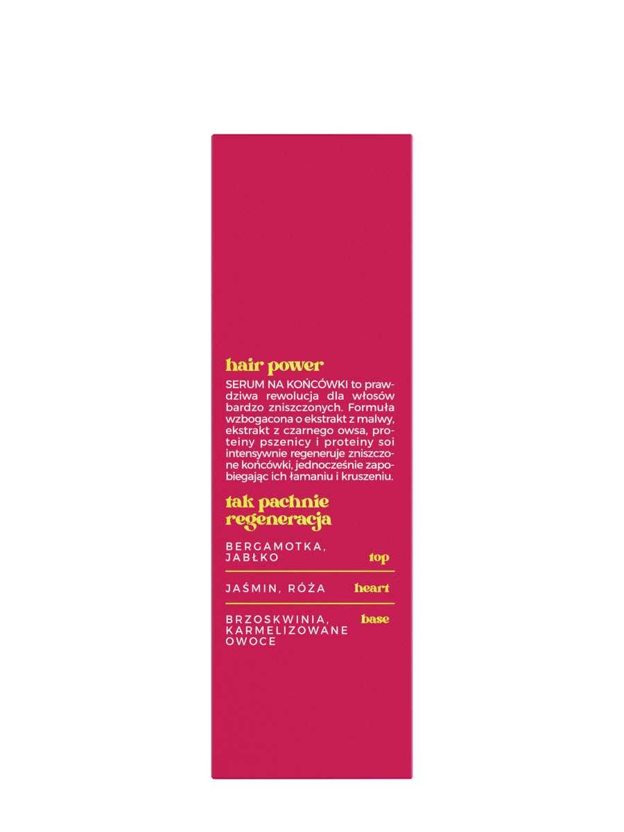 Serum na końcówki to prawdziwa rewolucja dla włosów bardzo zniszczonych. Formuła wzbogacona o ekstrakt z malwy, ekstrakt z czarnego owsa, proteiny pszenicy i proteiny soi. Intensywnie regeneruje zniszczone końcówki, jednocześnie zapobiegając ich łamaniu i kruszeniu.
