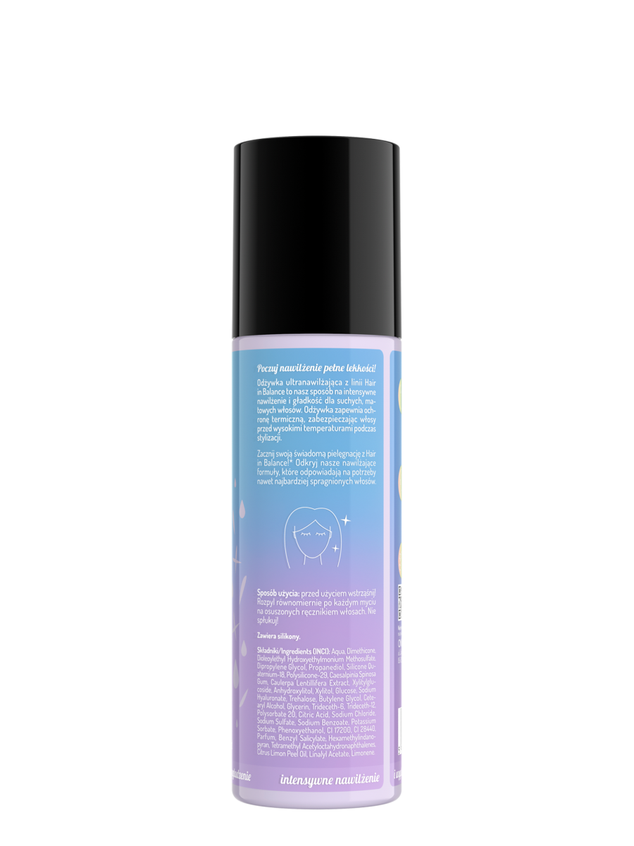 Odżywka ultranawilżająca z linii Hair in Balance to nasz sposób na optymalne nawilżenie i gładkość dla suchych, matowych włosów. Odżywka zapewnia ochronę termiczną, zabezpieczając włosy