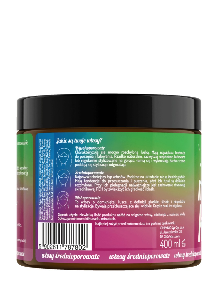 Maska do włosów średnioporowatych naturalna, wegańska formuła z olejem słonecznikowym, rycynowym i z awokado