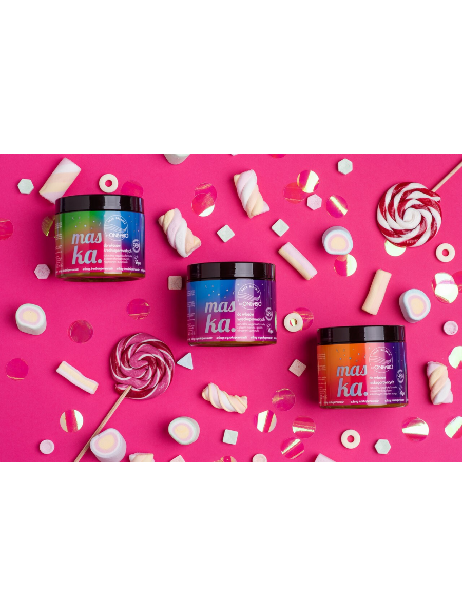 Maska do włosów wysokoporowatych naturalna, wegańska formuła z olejem lnianym, z pestek winogron i czarnuszki