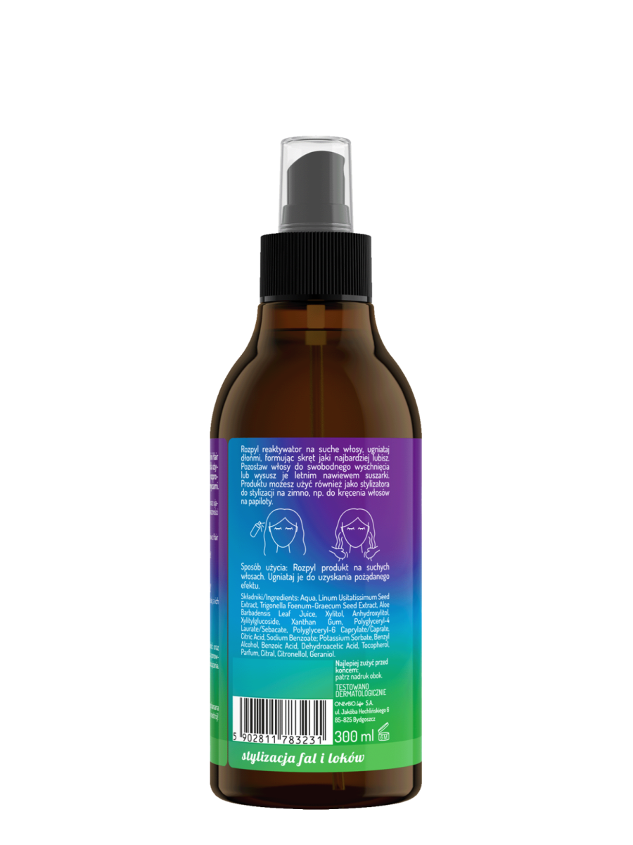 Stylizacja fal i loków naturalna, wegańska formuła z ekstraktem z lnu i kozieradki