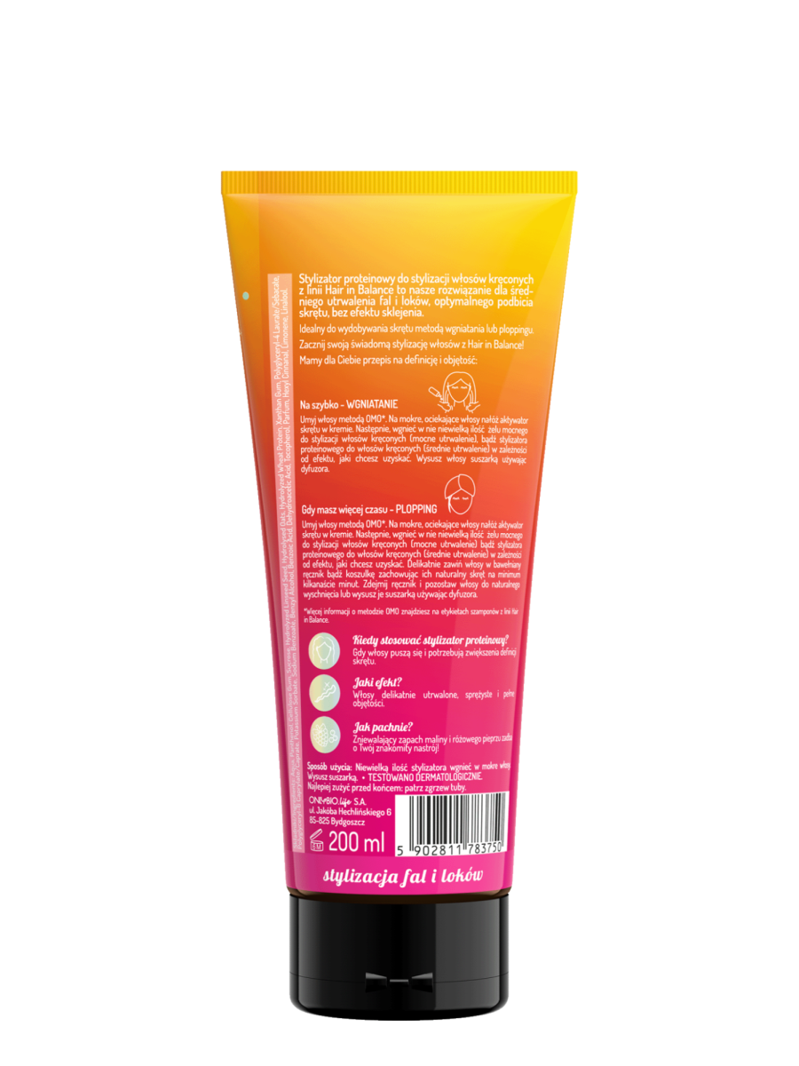 Stylizator proteinowy od OnlyBio doskonale sprawdza się w przypadku włosów z tendencją do kręcenia, które potrzebują podbicia oraz średniego utrwalenia zdefiniowanego skrętu. Dodaje falom i lokom sprężystości, dzięki czemu przez dłuższy czas prezentują się rewelacyjnie.