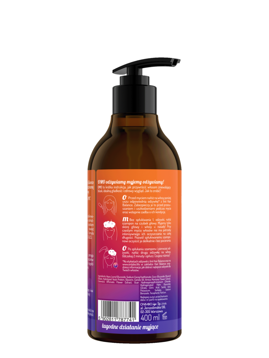 Niewielką ilość szamponu nałóż na czubek głowy, umyj skórę głowy i dokładnie spłucz.