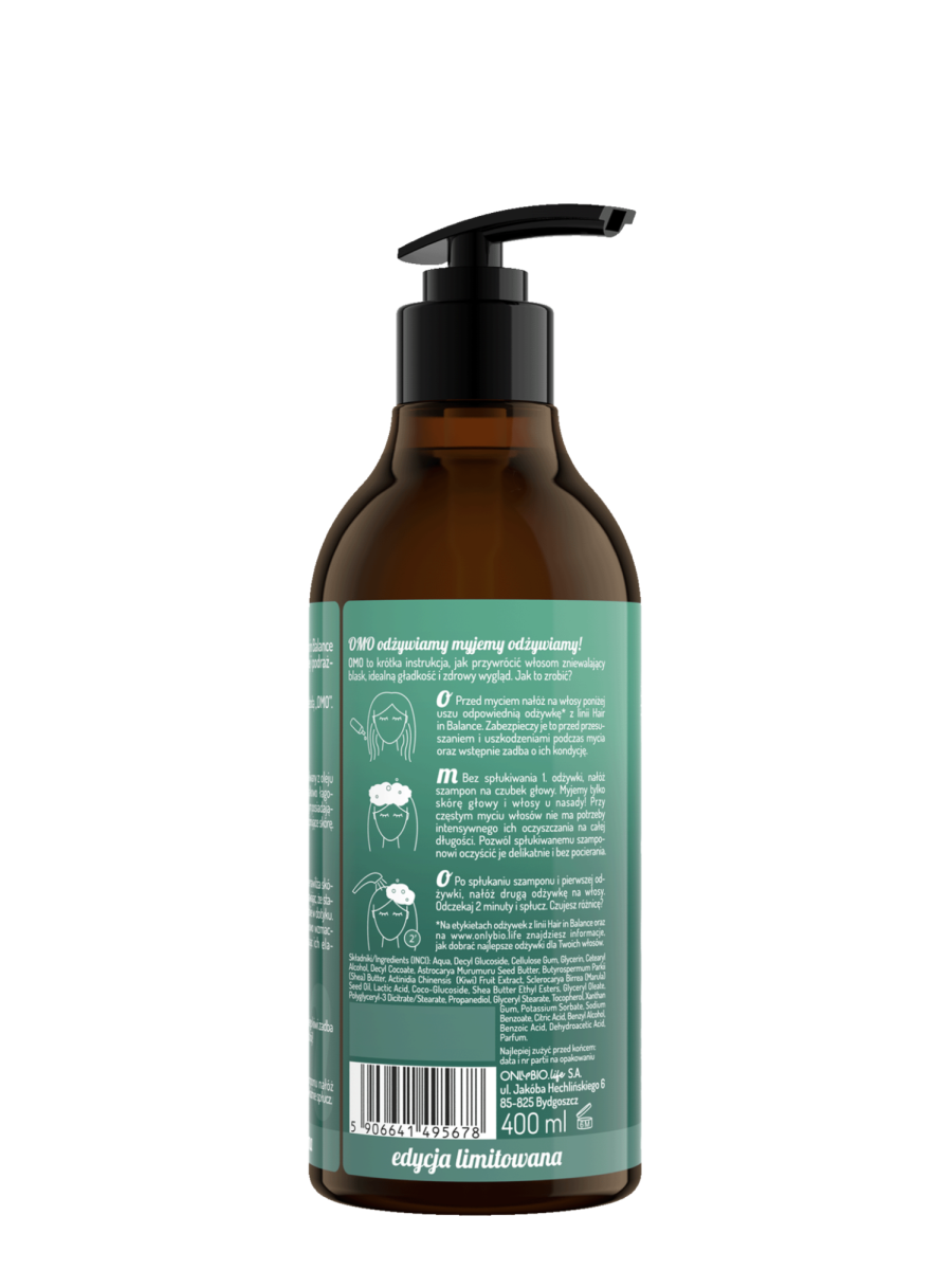Limitowany szampon nawilżający do włosów OnlyBio z linii Hair in Balance to nasze rozwiązanie dla suchej i podrażnionej skóry głowy.