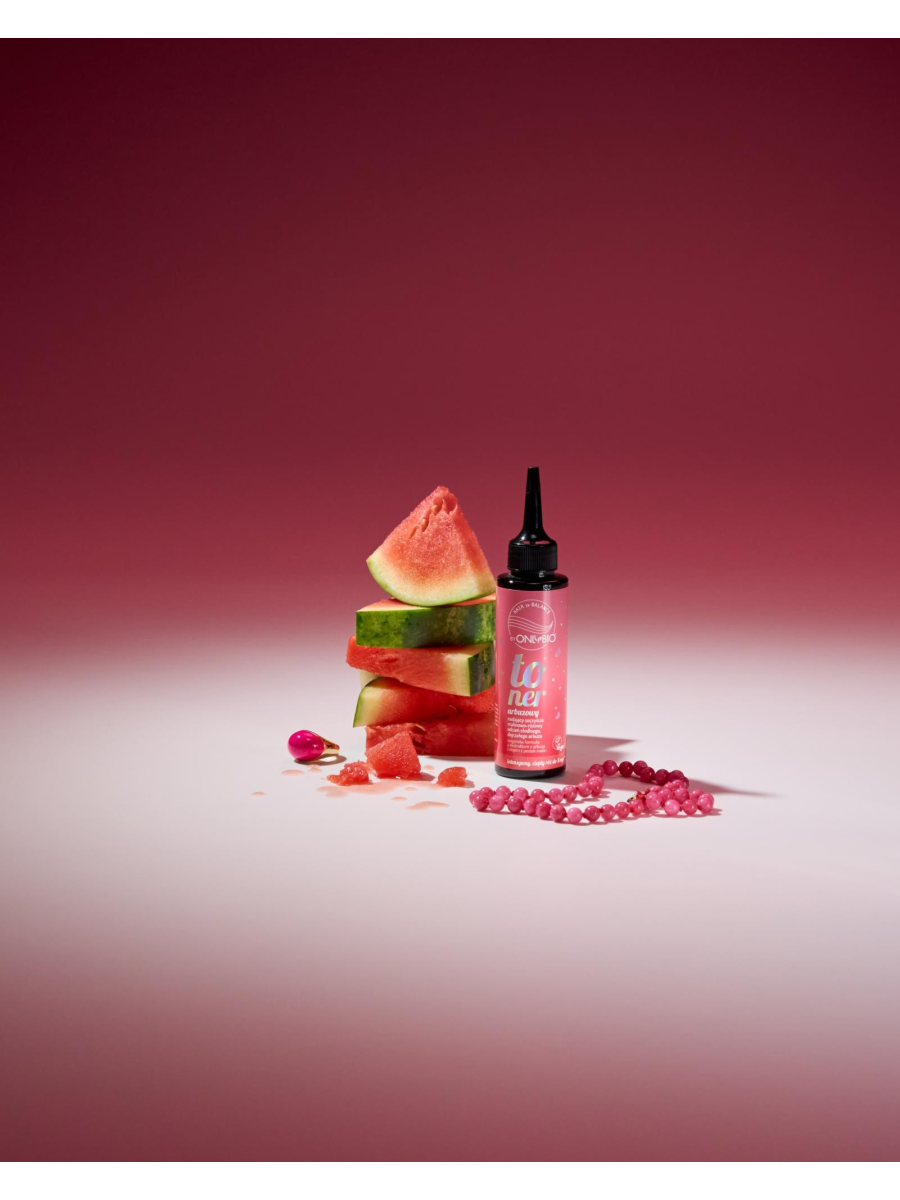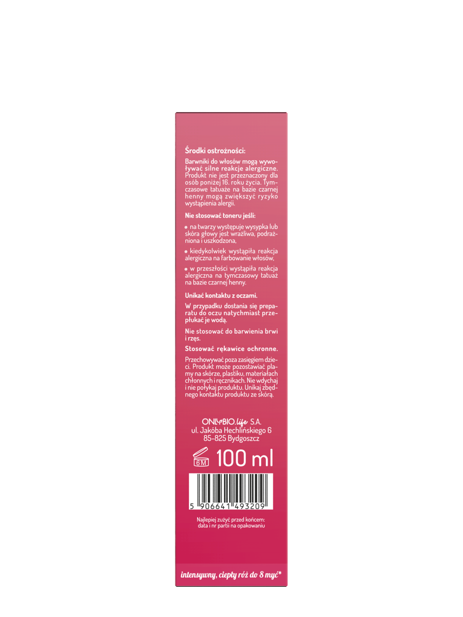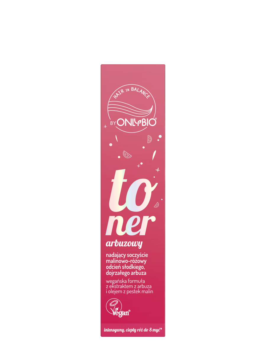 Toner do włosów blond OnlyBio Hair in Balance, który odświeża kolor, nadając soczyście malinowo- różowy odcień.