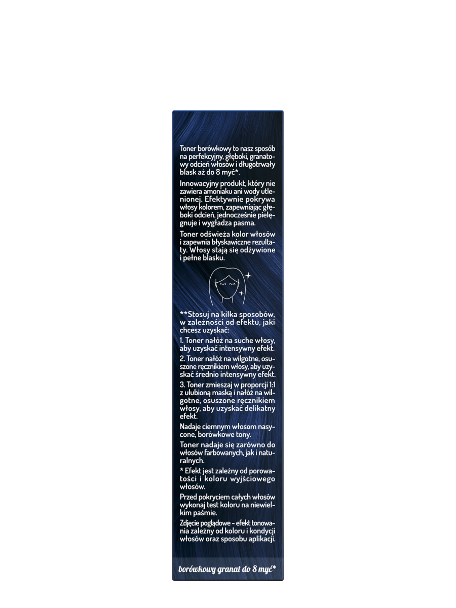 1. Toner nałóż na suche włosy, aby uzyskać intensywny efekt.