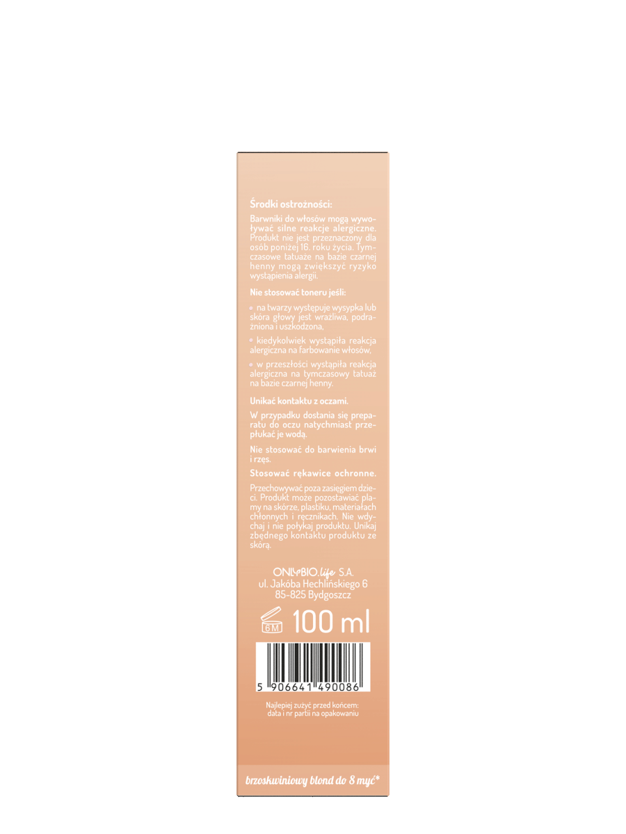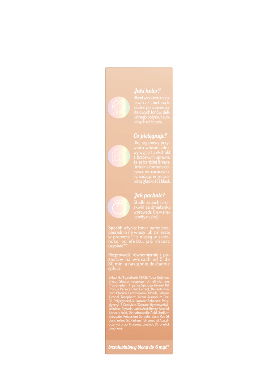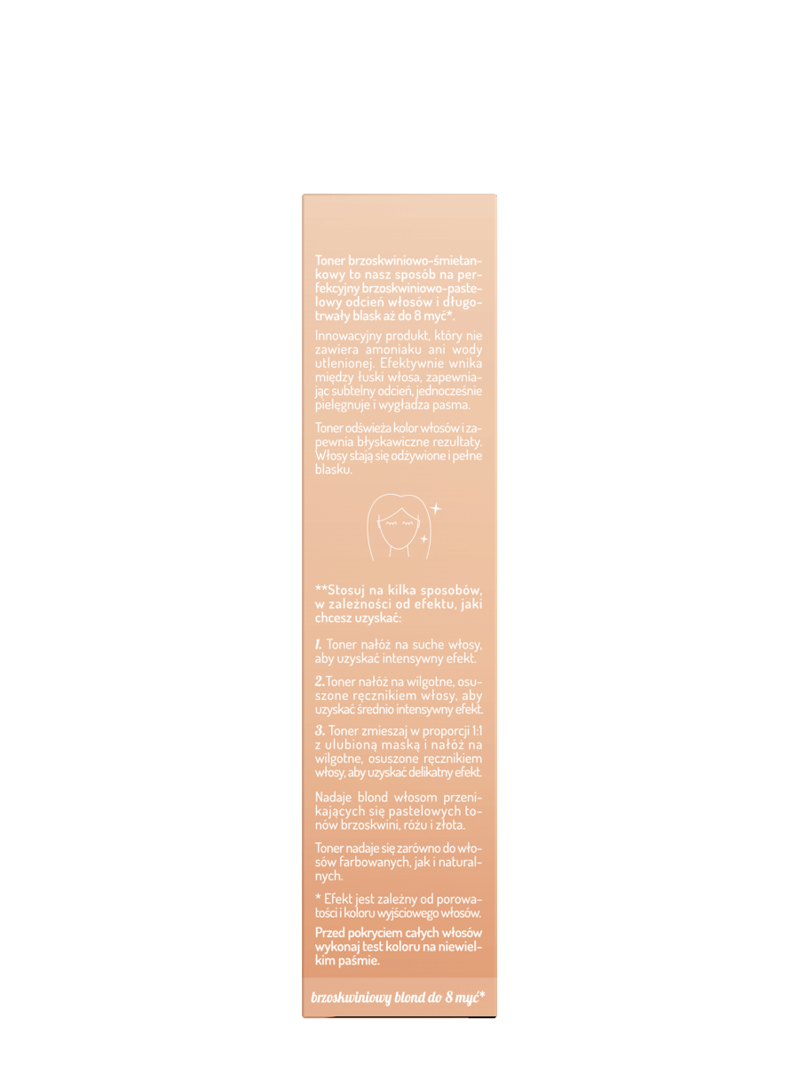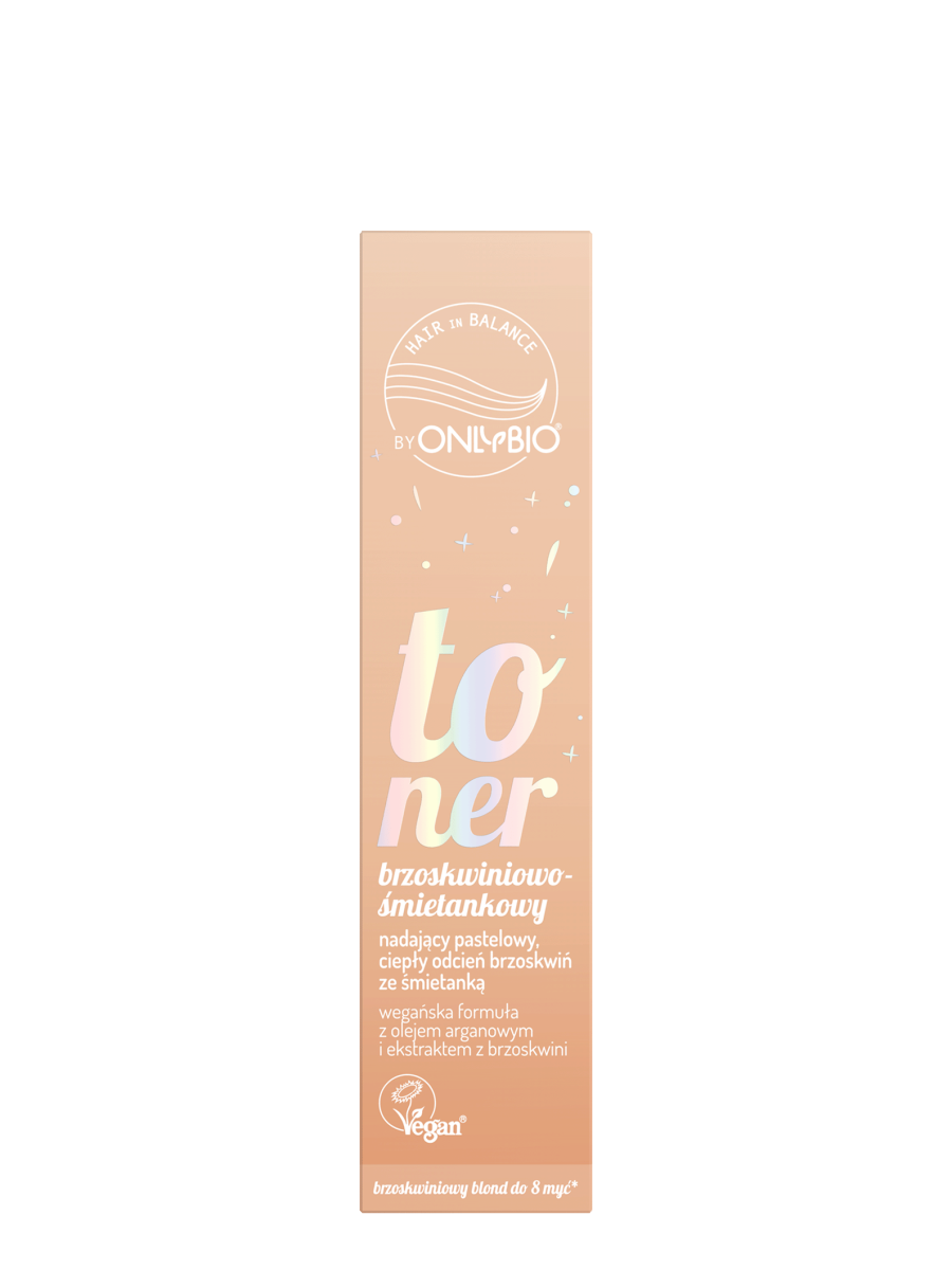 Toner do włosów blond OnlyBio Hair in Balance, który odświeża kolor, nadając włosom pastelowy, ciepły odcień brzoskwiń ze śmietanką