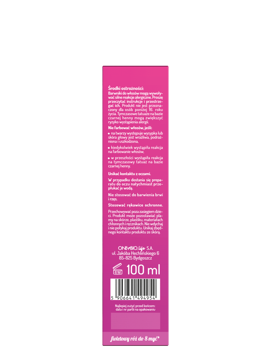 Sposób użycia: toner nałóż bezpośrednio na włosy lub zmieszaj
