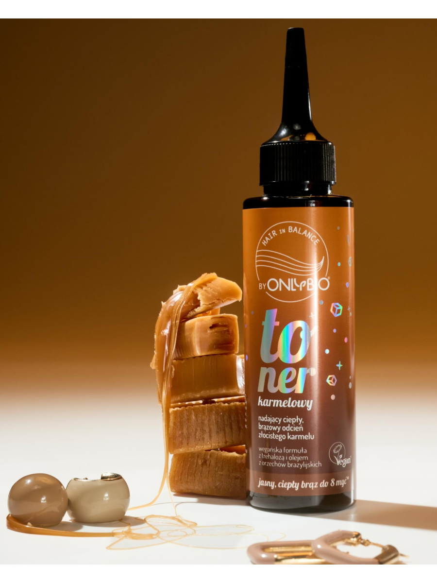 Toner do włosów blond OnlyBio Hair in Balance, który odświeża kolor, nadając ciepły, brązowy odcień.