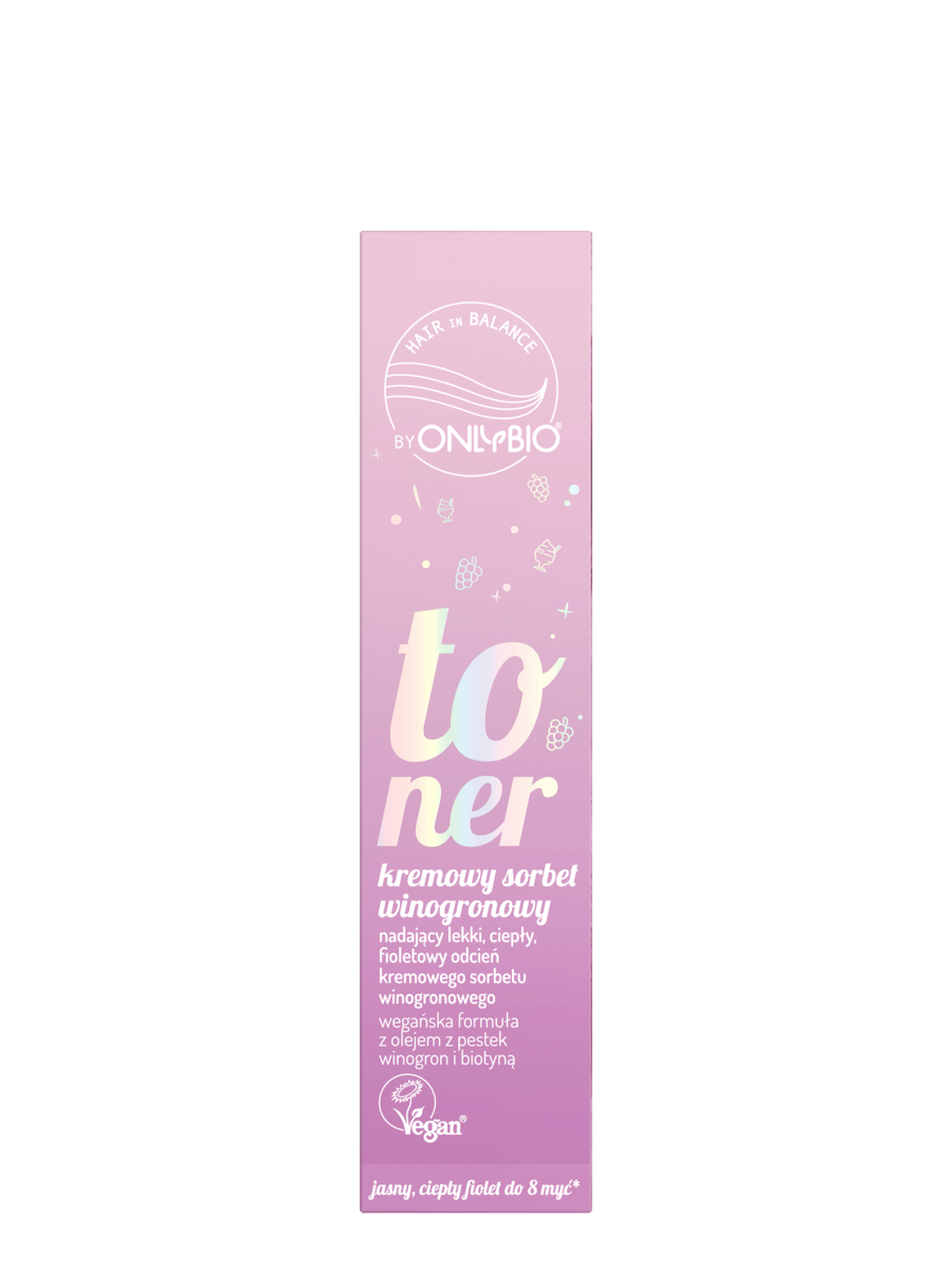 Toner do włosów blond OnlyBio Hair in Balance, który odświeża kolor, nadając włosom lekki, ciepły, fioletowy odcień