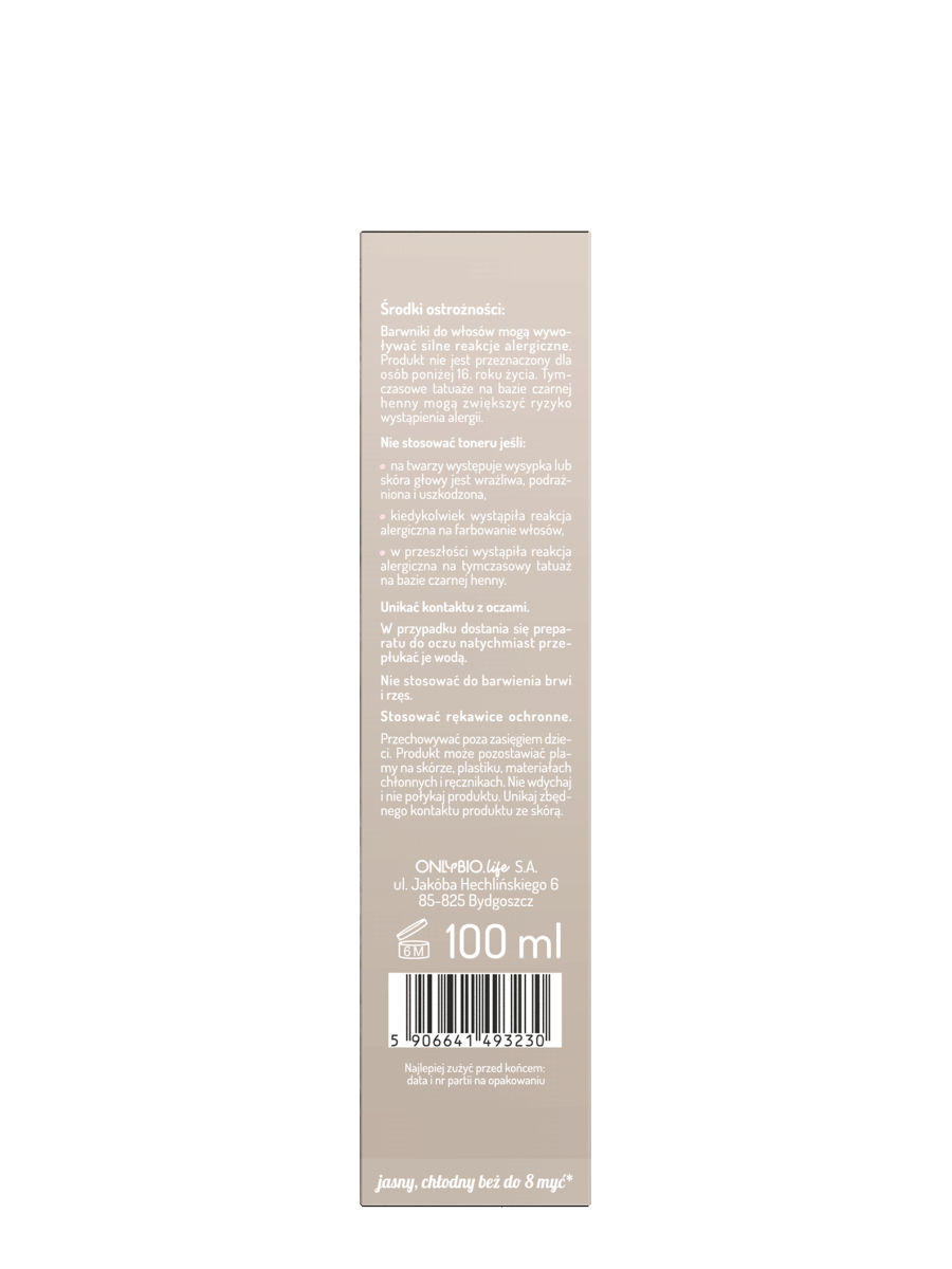 Toner do włosów blond OnlyBio Hair in Balance, który odświeża kolor, nadając beżowo- śmietankowy odcień.