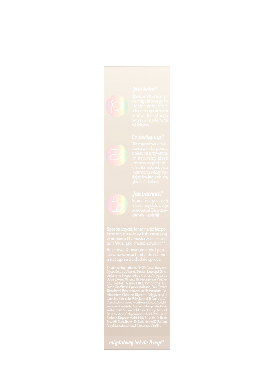 Blond w odcieniu mleka migdałowego to idealne połączenie mlecznomigdałowych tonów, delikatnego połysku i subtelnych refleksów.