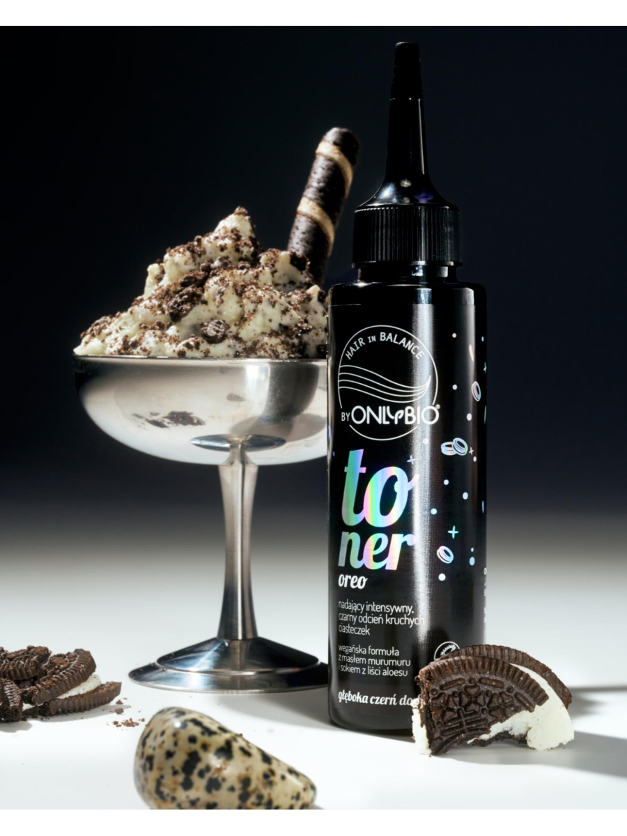 Toner do włosów brązowych OnlyBio Hair in Balance, który odświeża kolor, nadając intensywny, czarny odcień.