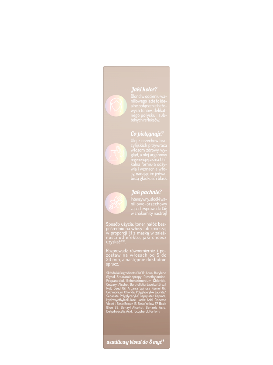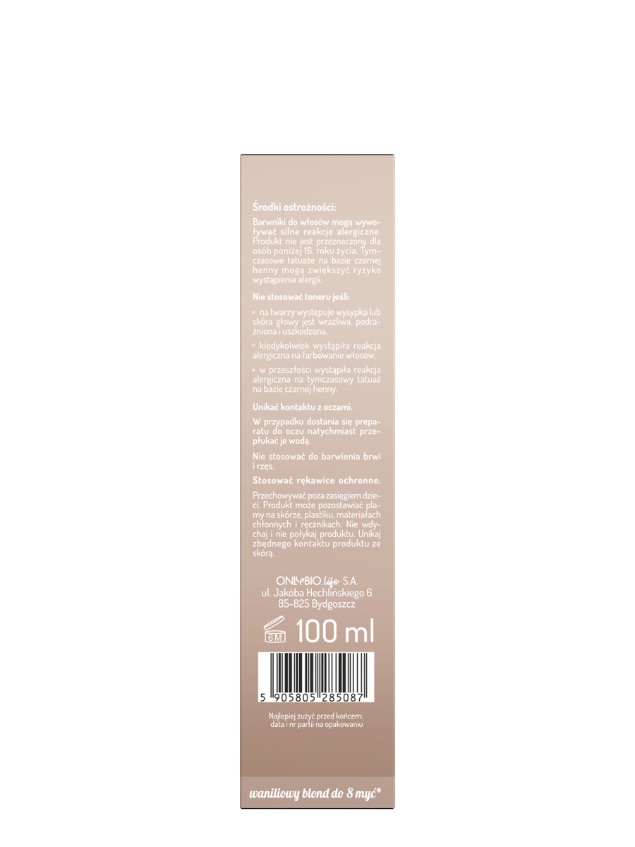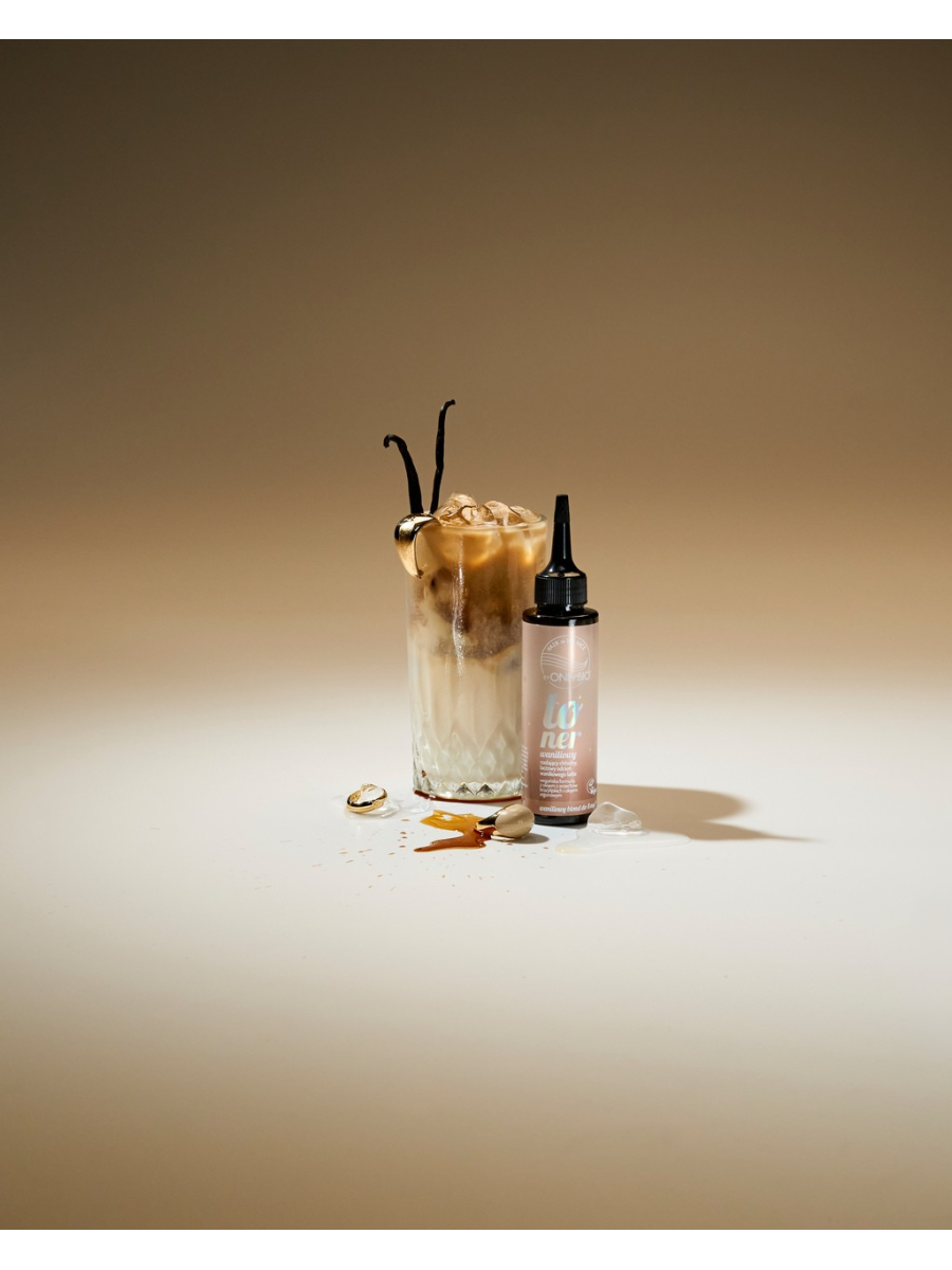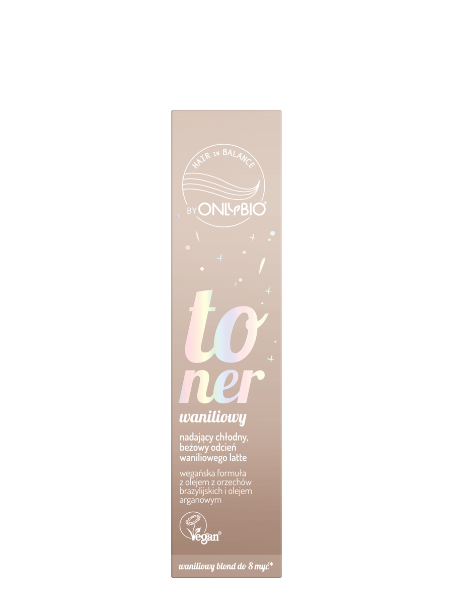 Toner do włosów blond OnlyBio Hair in Balance, który odświeża kolor, nadając beżowo-waniliowego odcienia blondu.