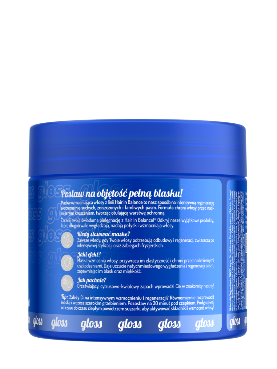 Maska wzmacniająca włosy z linii Hair in Balance to nasz sposób na intensywną regenerację ekstremalnie suchych, zniszczonych i łamliwych pasm. Formuła chroni włosy przed nadmiernym kruszeniem, tworząc otulającą warstwę ochronną.