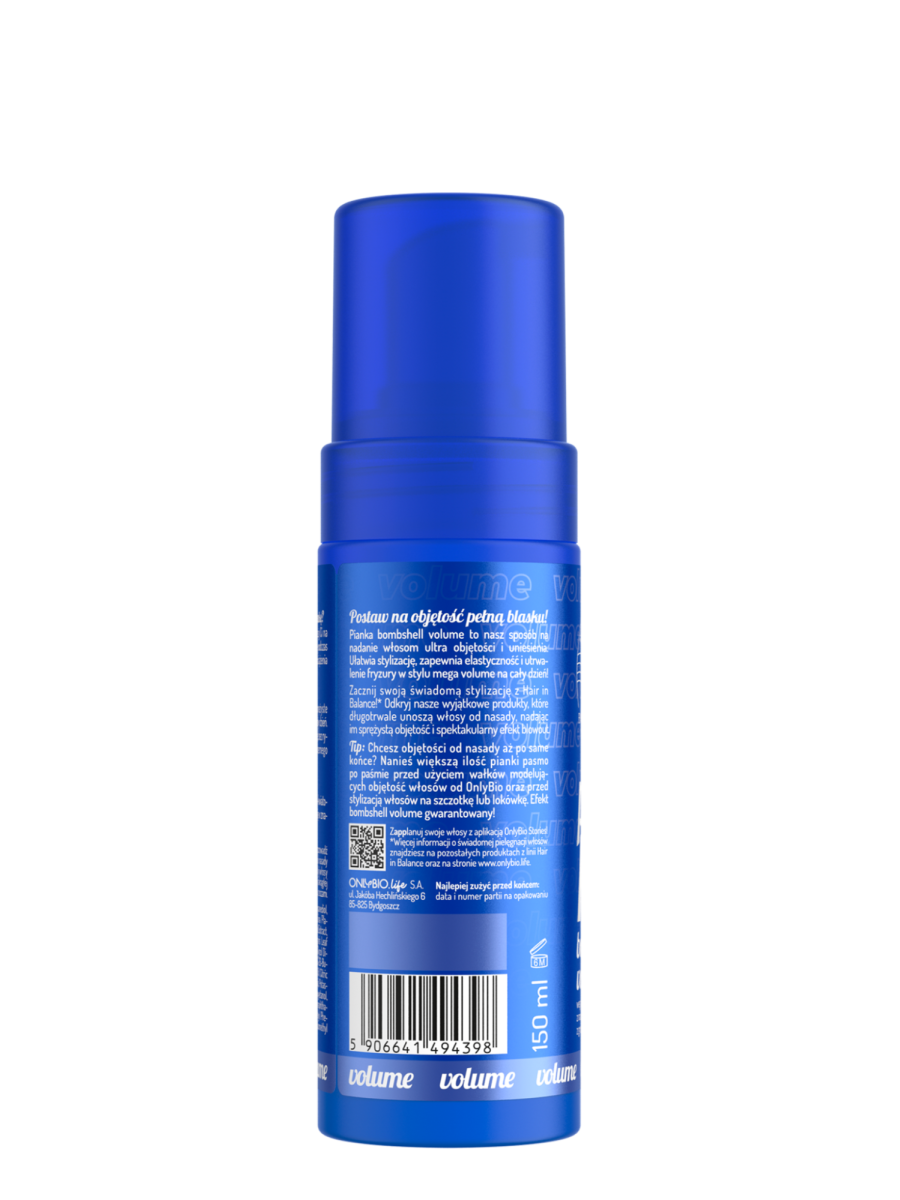 Nanieś większą ilość pianki pasmo po paśmie przed użyciem wałków modelujących objętość włosów od OnlyBio oraz przed stylizacją włosów na szczotkę lub lokówkę. Efekt bombshell volume gwarantowany