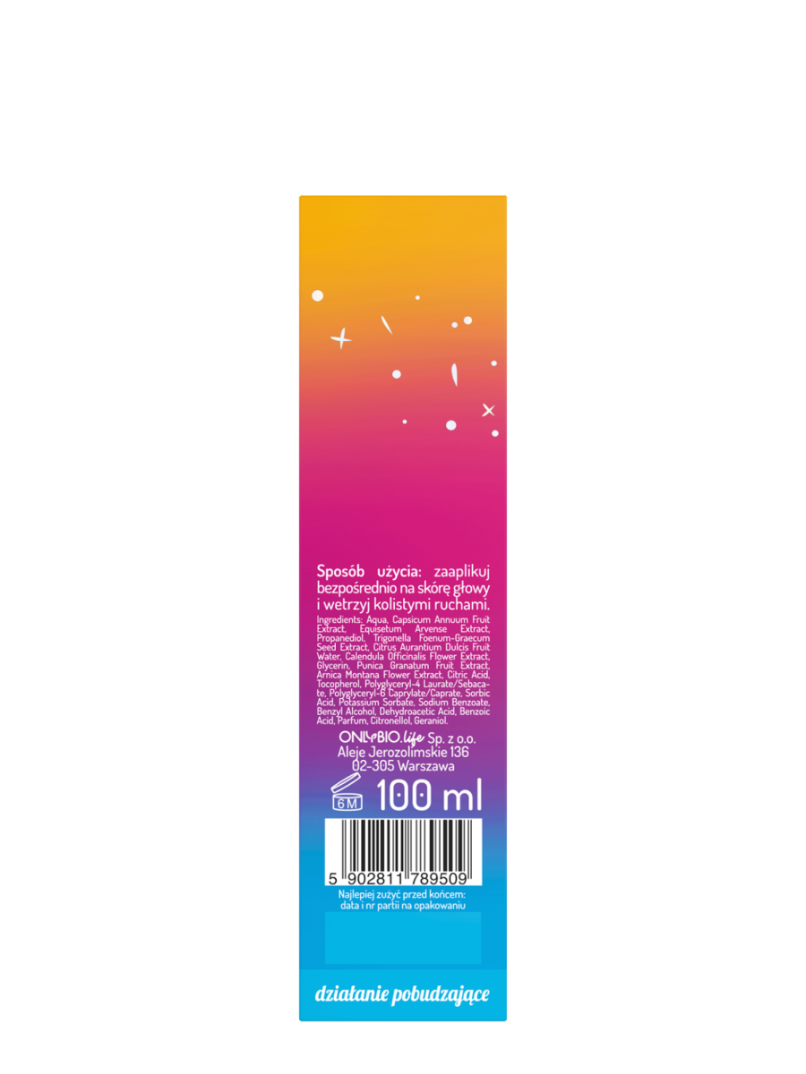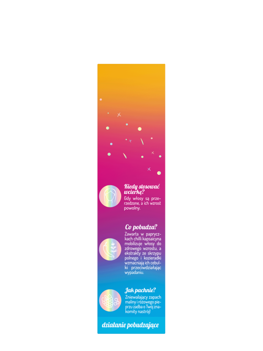 Stymuluje wzrost włosów i wzmacnia je u nasady.