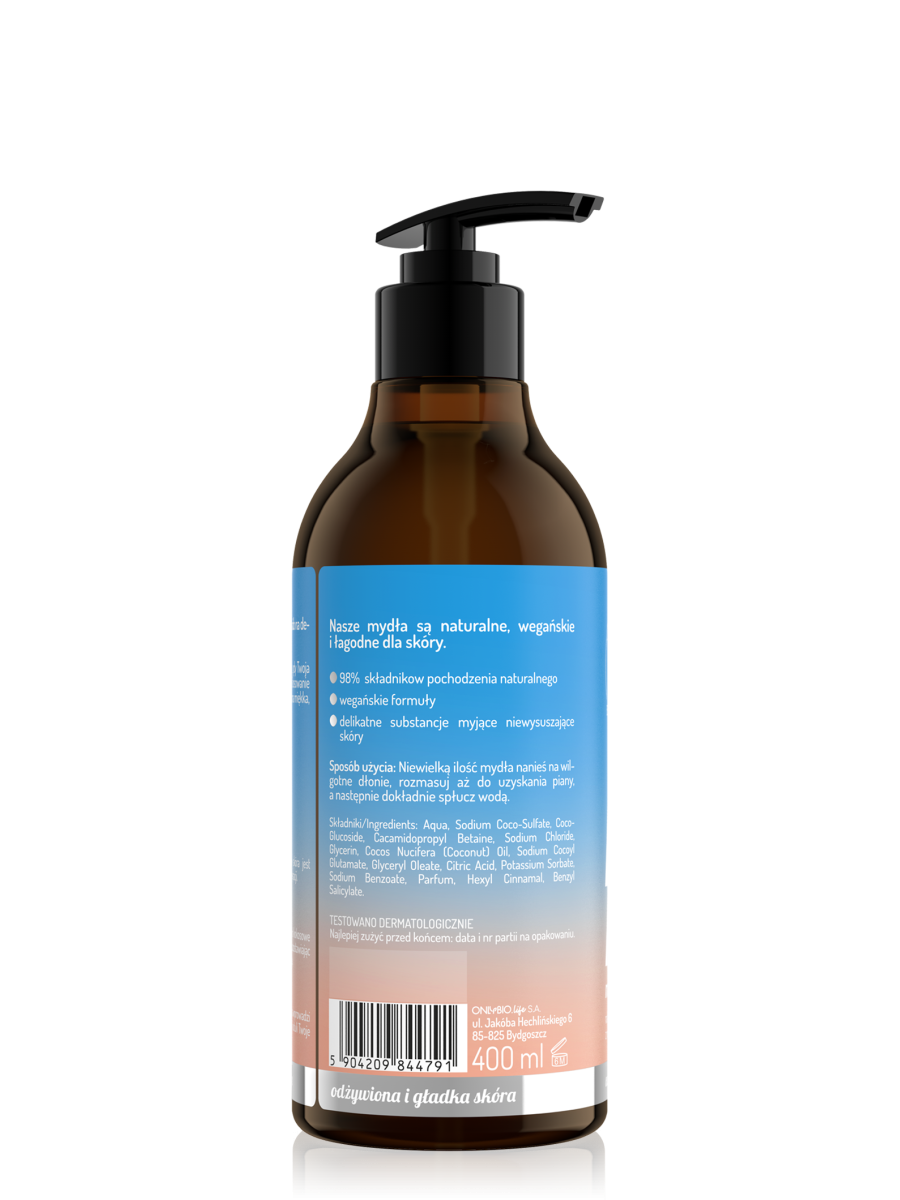 Rutyna nie musi być nudna! Mydło do rąk Kokos od Onlybio zadba o Twoje dłonie, a przy tym oczaruje Cię zmysłowym zapachem. Jego łagodna formuła z masłem kokosowym sprawi, że sucha i odwodniona skóra stanie się miękka, gładka, a przede wszystkim odżywiona. Delikatne substancje myjące skutecznie usuną zanieczyszczenia, nie powodując przesuszenia. Mydło jest wegańskie i zawiera aż 98% składników pochodzenia naturalnego.
