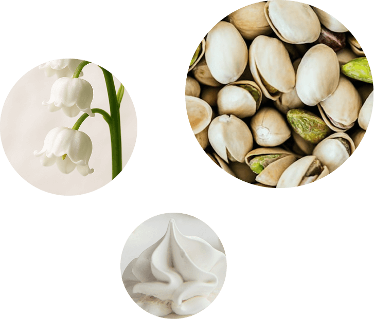 Sweetness that completely draws you in. Pistachio is like a secret ingredient, lily of the valley adds lightness, and whipped cream is a sweet temptation you just can’t resist.