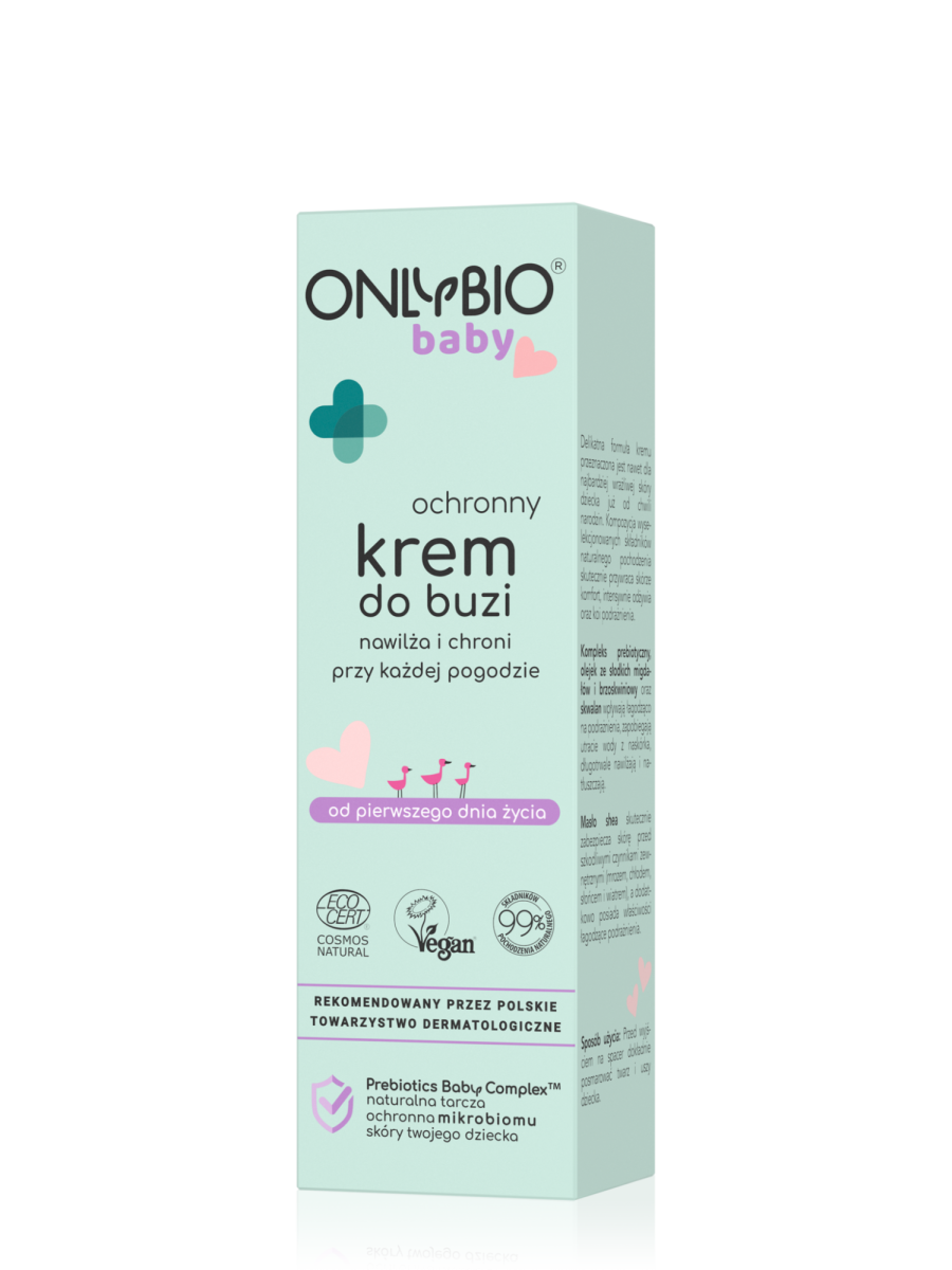 Delikatna formuła kremu przeznaczona jest nawet dla najbardziej wrażliwej skóry dziecka już od chwili narodzin. Kompozycja wyselekcjonowanych składników naturalnego pochodzenia skutecznie przywraca skórze komfort, intensywnie odżywia oraz koi podrażnienia. Kompleks prebiotyczny, olejek migdałowy i brzoskwiniowy oraz skwalan wpływają łagodząco na podrażnienia, zapobiegają utracie wody z naskórka, długotrwale nawilżają i natłuszczają. Masło shea skutecznie zabezpiecza skórę przed szkodliwymi czynnikami zewnętrznymi (mrozem, chłodem, słońcem i wiatrem), a dodatkowo posiada właściwości łagodzące podrażnienia.