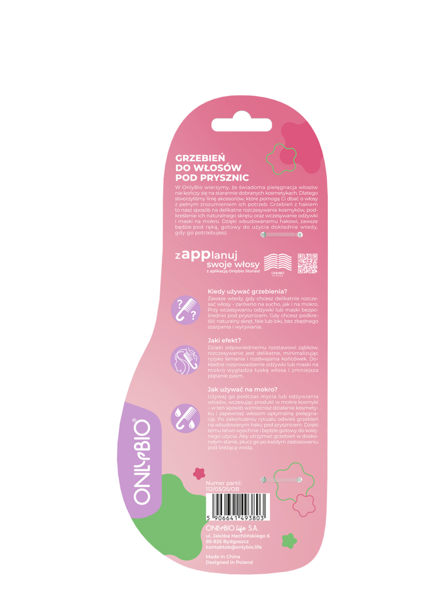 W OnlyBio wierzymy, że świadoma pielęgnacja włosów nie kończy się na starannie dobranych kosmetykach. Dlatego stworzyliśmy linie akcesoriów, które pomogą Ci dbać o włosy z pełnym zrozumieniem ich potrzeb. Grzebień z hakiem